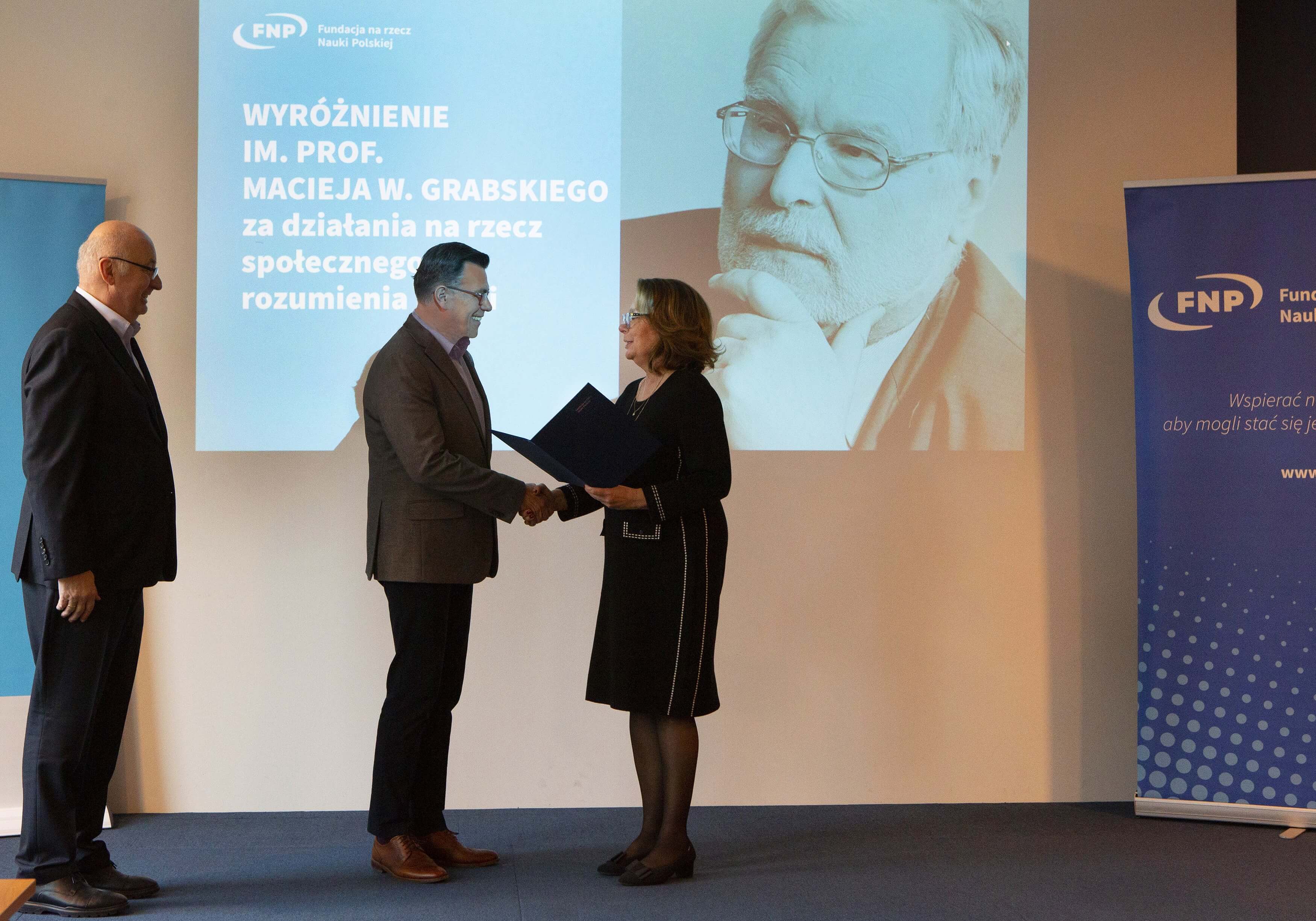 Wyróżnienie im. prof. Macieja W. Grabskiego jest przyznawane przez FNP od 2016 r. Mogą nim zostać uhonorowane osoby, których aktywność wspiera również edukację społeczeństwa w zakresie rozróżniania „dobrej” i „złej” nauki, tj. badań opartych na rzetelnej metodzie i racjonalnym wnioskowaniu od badań niespełniających tych kryteriów. Wysokość wyróżnienia od tego roku wynosi 20 tys. zł.