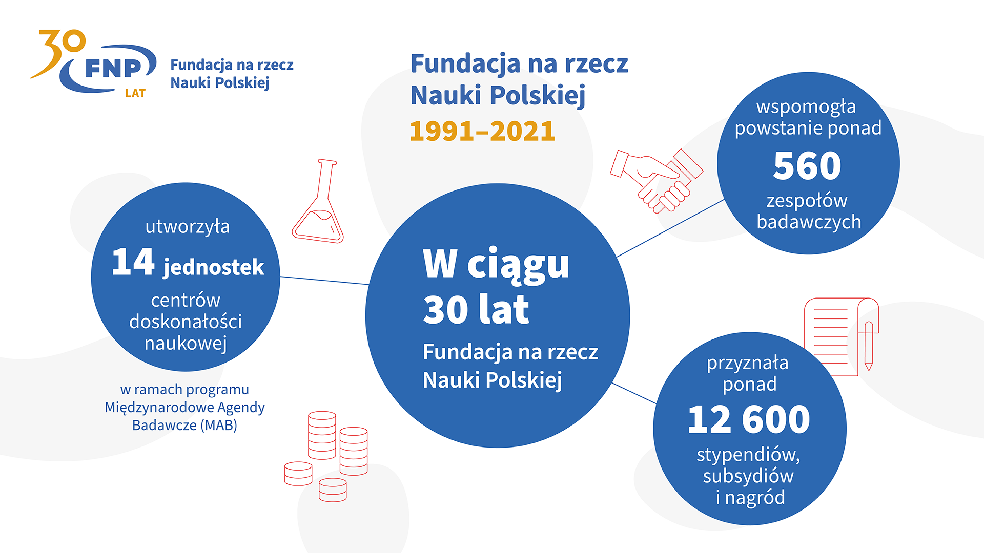 Od rozpoczęcia swojej działalności w 1991 r. FNP przekazała ponad 1,710 mln zł na wspieranie nauki ze środków własnych i funduszy strukturalnych UE. Fundacja przyznała ponad 12 600 stypendiów, subsydiów i nagród naukowcom i wsparła utworzenie ponad 560 nowych zespołów badawczych.